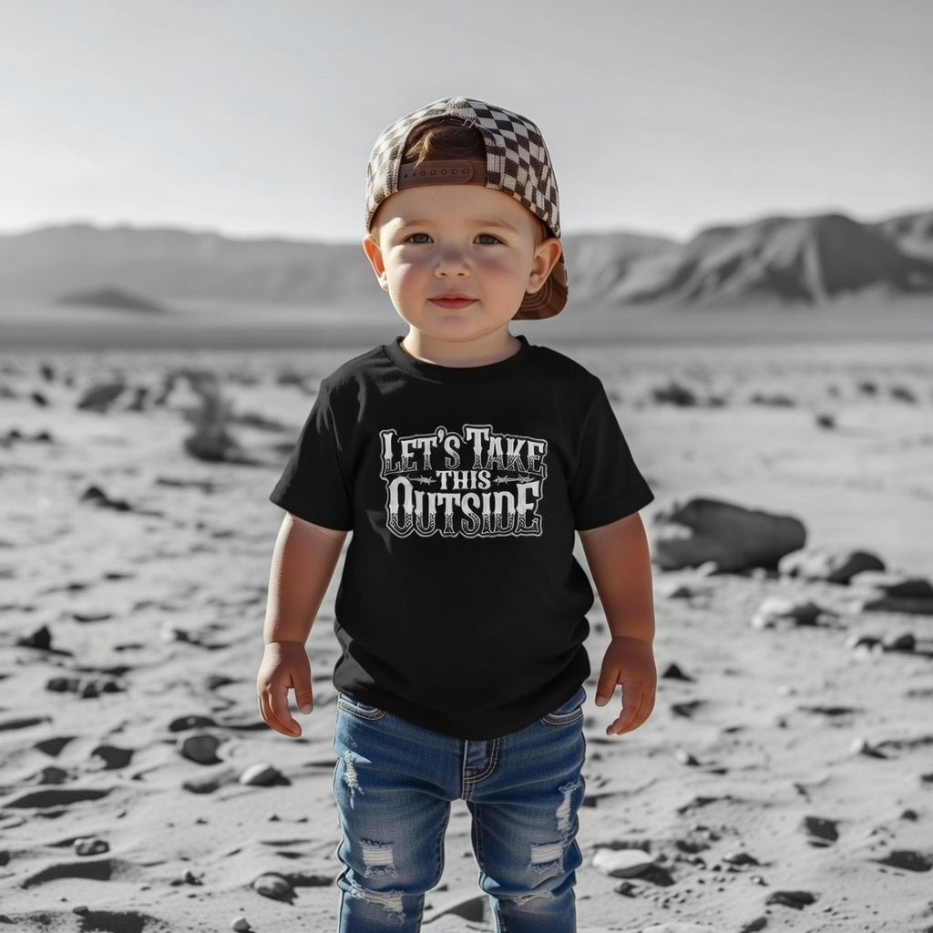 Soft, lightweight toddler tee with bold, playful lettering that says “Let’s Take This Outside.” The short-sleeve cut and breathable airlume cotton make it easy for little ones to run, climb, and explore. The graphic adds attitude without sacrificing comfort — a casual everyday layer for backyard adventures, park days, or family outings. Smooth seams and a tear-away label keep skin happy, while the classic silhouette pairs naturally with shorts, joggers, or a favorite hoodie when the sun goes down.