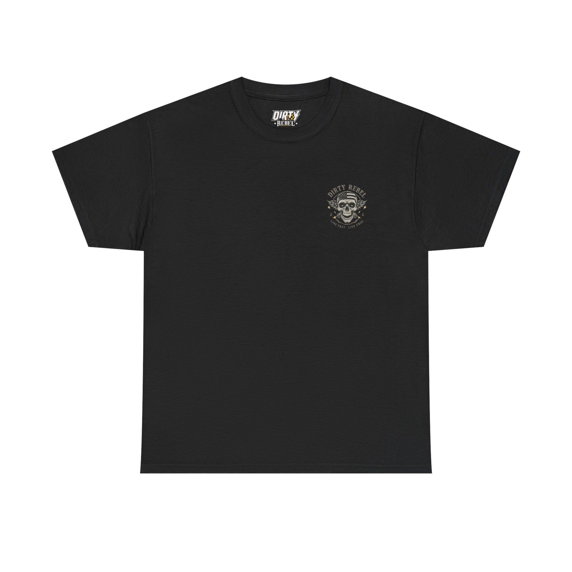 Unleash the spirit of freedom, speed, and good times with the Men's Dirty Rebel Sturgis Tee. Crafted for those who thirst for adrenaline, this tee features an all-original Dirty Rebel design that pairs perfectly with the roar of an engine and the open road. Made from a soft yet durable blend, it ensures a comfortable fit that keeps up with your high-octane lifestyle. Experience the thrill of the ride on your skin with our Sturgis tee, where design meets comfort, and comfort meets speed. The creation process of this tee is dedicated to capturing the energy and essence of the bike life. As such, the design is unique, woven with care, and exudes the same rugged appeal as its inspiration.