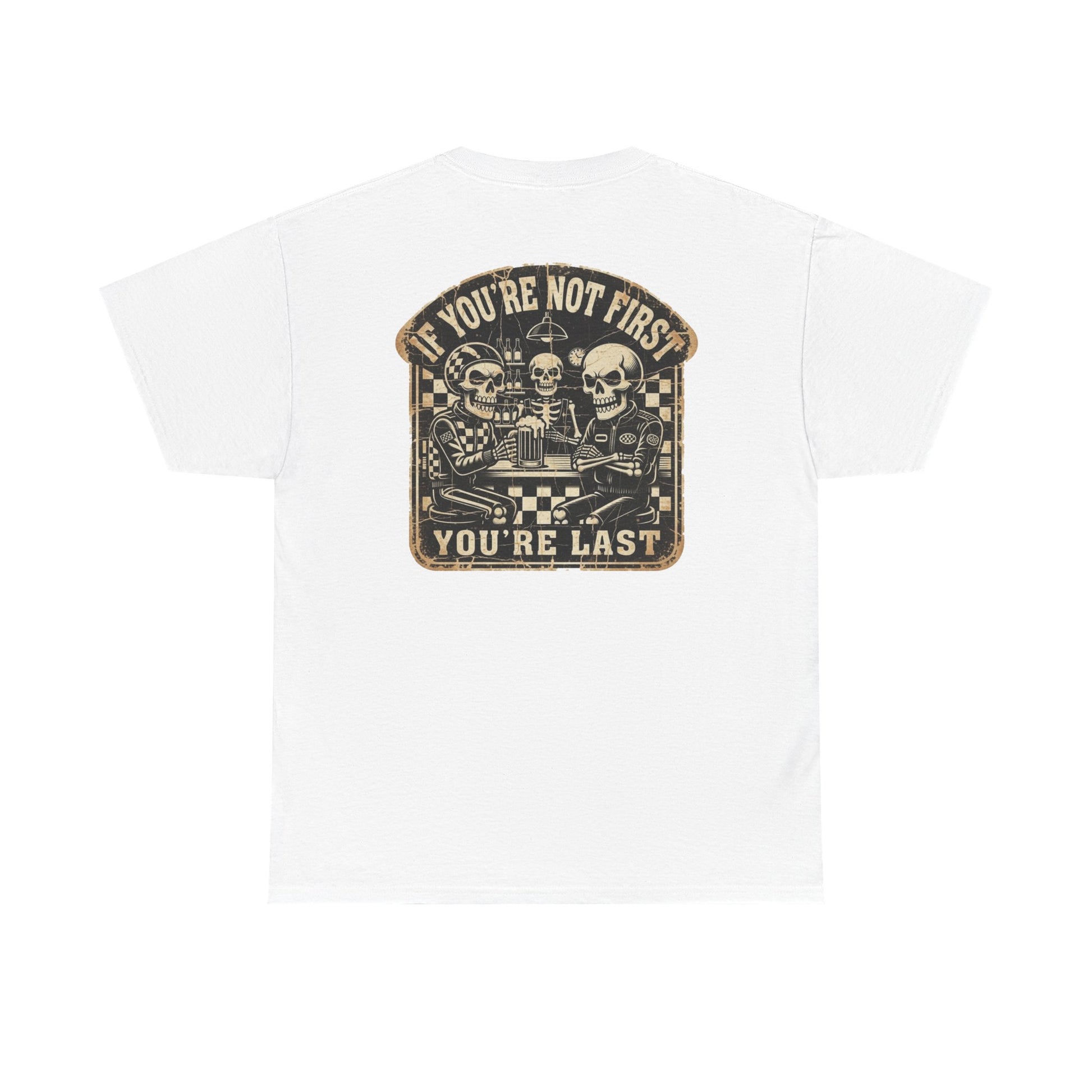 Fast-paced good times merge with lasting quality in our Winner's Tavern Tee. Designed for those who understand the thrill of the race and the camaraderie of the tavern, this tee brings both worlds together. The front features a catchy saying, 'If you're not first, you're last,' a motto for life's many races. The t-shirt is crafted from a super-soft, comfortable fabric that can withstand the tough times, yet remains gentle on your skin. Whether you're in a high-speed race or just chilling with a cold one, our tee is your trusty companion. The making process involves meticulous crafting to produce a tee that's not just hard-wearing, but equally comfortable. The print is of high quality, ensuring it won't chip or fade away. Treat yourself to a shirt that's built for champions, made to last from the first cheers to the last.