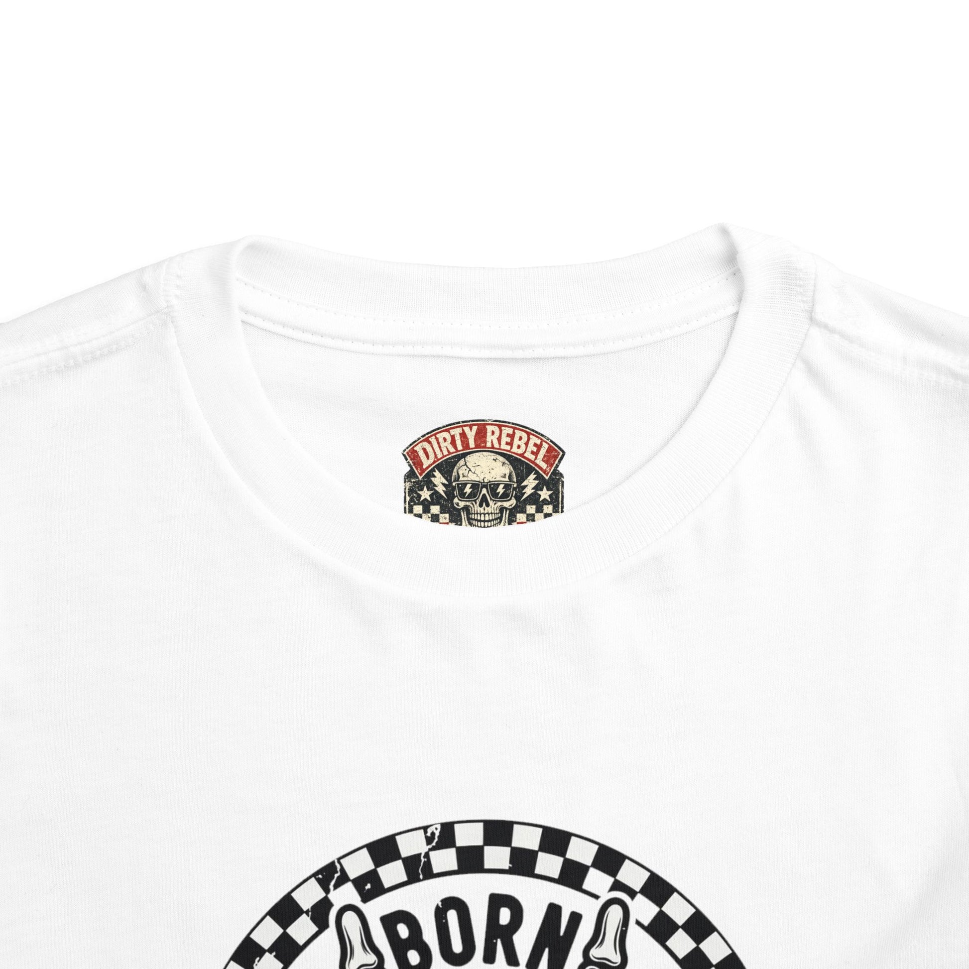 A little rebel for big adventures. This toddler tee features a bold, hand-drawn skull and checkered badge reading “Born to Be Wild” — softened into a kid-friendly, black-and-white graphic that feels playful, cheeky, and a touch rock ’n’ roll. The lightweight cotton keeps busy bodies cool during park laps and sandbox sieges, while the tear-away label and clean side seams make dressing easier and more comfortable. Pair it with shorts, overalls, or a tiny denim jacket for outings where attitude matters more than rules. Gifts for first birthdays, playdate wardrobes, or family photos when you want a bit of edge without the fuss.