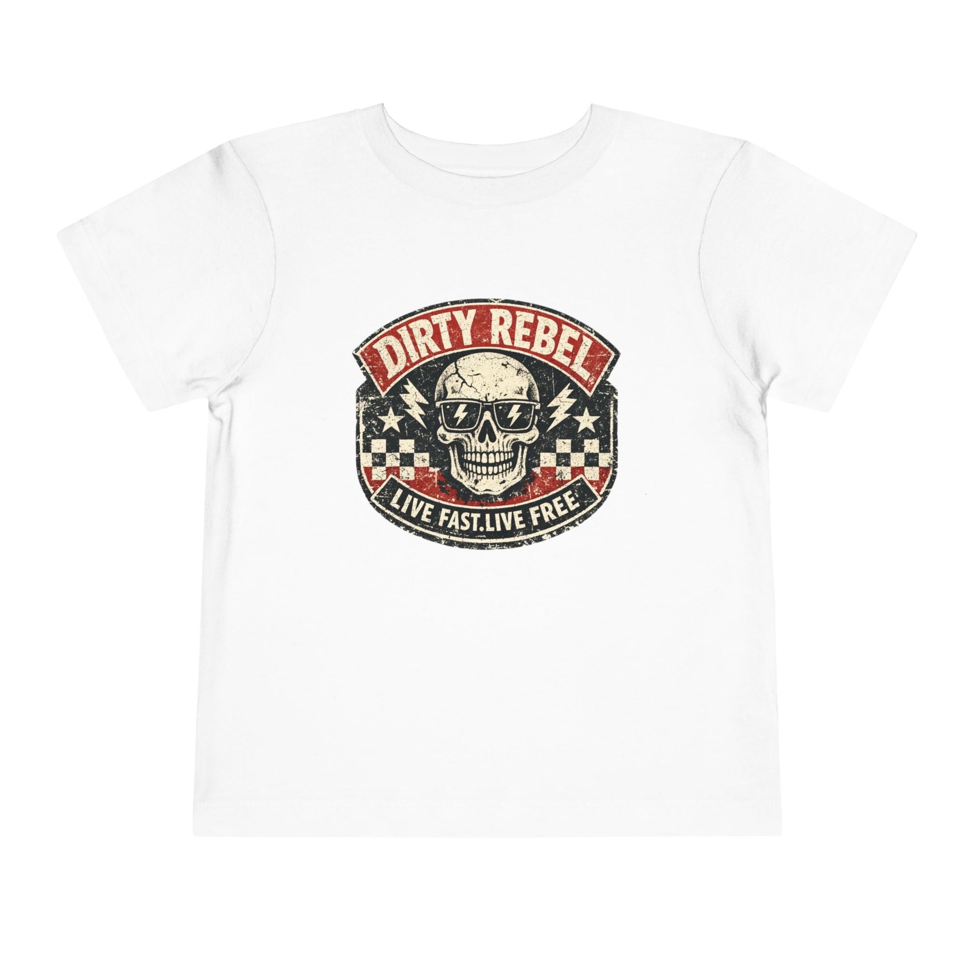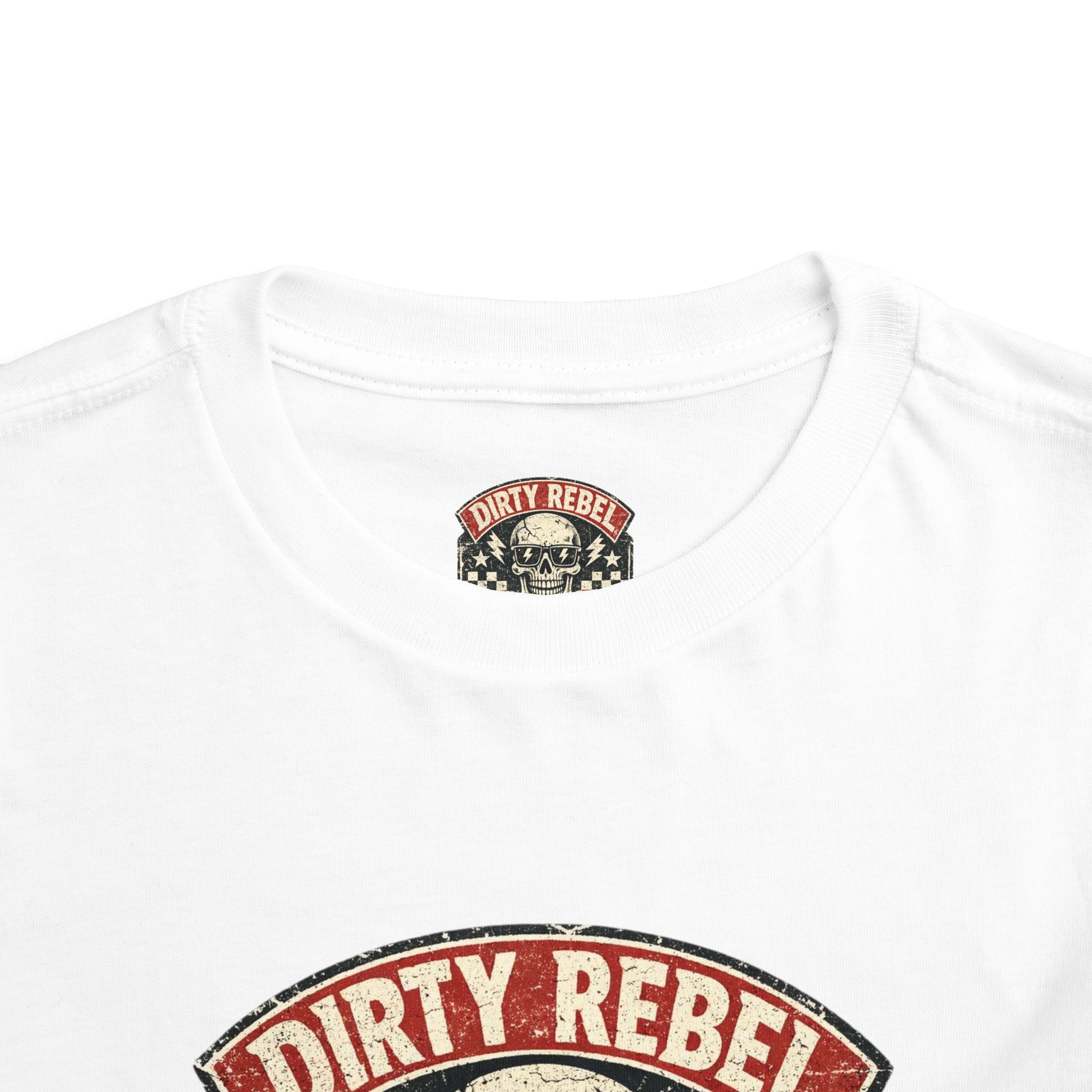 This toddler short sleeve tee brings a tiny bit of edge to everyday play. Soft, lightweight fabric keeps kids comfortable through backyard adventures and quiet storytime alike, while the vintage-inspired “Dirty Rebel” skull emblem adds a cheeky, rebellious touch that stands out without being loud. It layers easily under jackets or wears solo on warm days. The tear-away label and side-seamed construction mean a better fit and itch-free wear for sensitive little ones. Put it on and watch a small personality shine through — ready for scrapes, giggles, and everything in between.