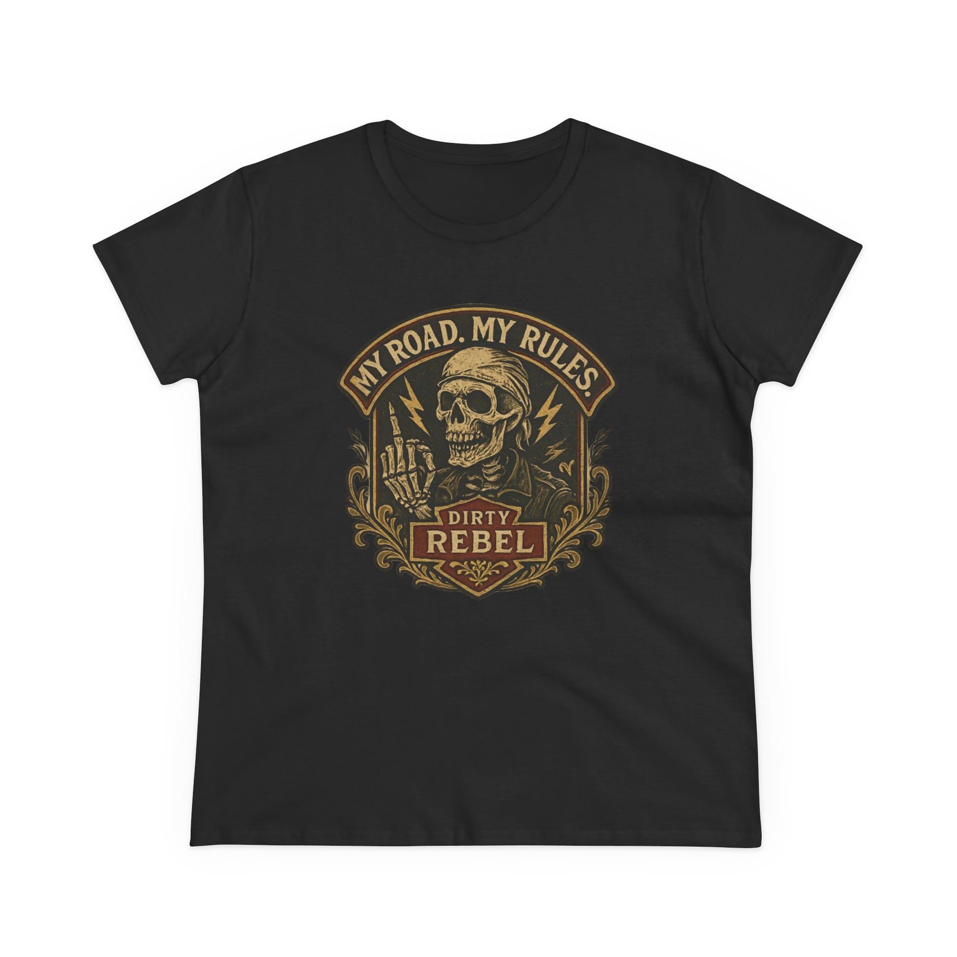 Unleash your enduring spirit to own the road with our 'Own the Road Again' Women's Tee. Crafted with a rebellious heart in mind, it embodies the mantra 'live fast. live free.' The tee instantly evokes good times, be it a thrilling race on the highway or a calm night under the stars. This tee, in its essence, defines 'my road. my rules.' The edgy graphic design pairs seamlessly with a rugged jacket or simple jeans, elevating your style to a new level. Durably made with a blend of top-notch materials, this tee guarantees a tough quality to withstand your most adventurous rides. However, don't let the toughness fool you. The material is soft on skin, ensuring sheer comfort throughout your journey. In a world of conformity, the 'Own The Road Again' tee allows you to rebel against the ordinary and embrace your unique journey.