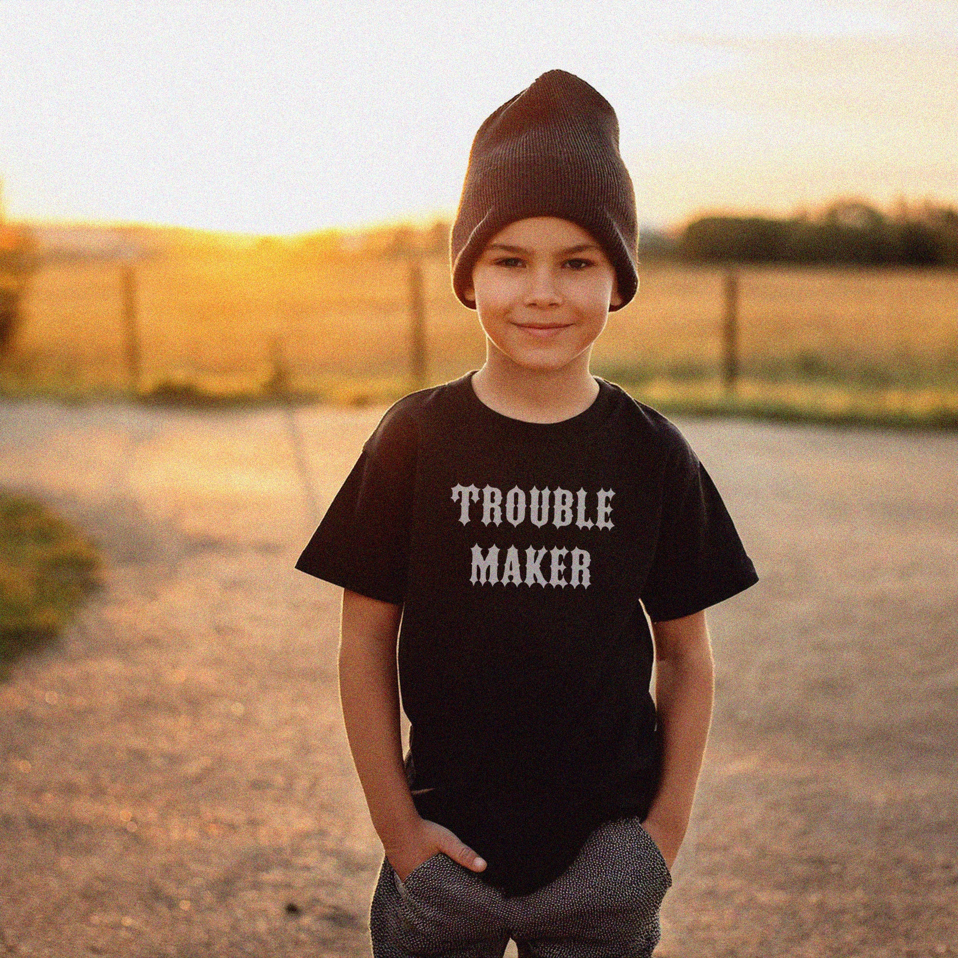 Unleash the free spirit of your young ones with our eye-catching Youth Trouble Maker Tee. With its punk-inspired checker and smiley design, this tee is perfect for your little thrill-seekers. The rebel graphic tee features a unique Dirty Rebel original design, bringing a touch of edgy flair to their wardrobe. Made from high-quality, soft fabric, it ensures your child stays comfortable throughout their daily adventures, while also being durable enough to withstand their playful shenanigans. On top of that, our Youth Trouble Maker Tee has been meticulously crafted, ensuring a perfect fit for your young ones. It's not just a tee, it's a statement. Let your child express their unique individuality and rebellious spirit with this trendy tee.